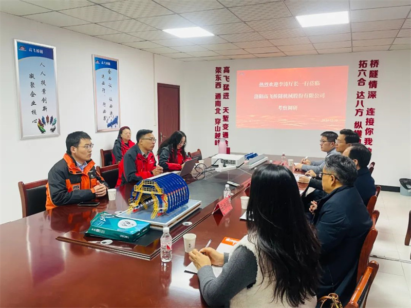 2024年12月10日,河南省人民政府參事、河南省工業(yè)和信息化廳原黨組書記、廳長、河南省紅旗渠工業(yè)創(chuàng)新發(fā)展研究會會長李濤一行到洛陽高飛橋隧機(jī)械股份有限公司走訪調(diào)研。公司領(lǐng)導(dǎo)黃高飛、楊玄等陪同調(diào)研,并對領(lǐng)導(dǎo)的到來表示熱烈歡迎。